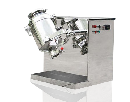 三维混合机为高能混合设备,设计有独特的主动、二维混合机从动双轴及二轴端三维运动摇臂结构,使混料筒体能在立体三维空间做复杂的多方向运动,使物料沿着筒体作环向、径向和轴向的三向复合运动,加速了物料的流动扩散作用,物料无离心力作用,没有比重偏析和分层、积聚现象,无死角,从而达到均匀混合的目的。